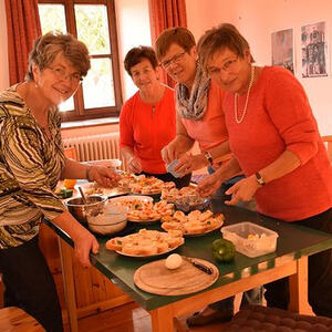 Im kleinen Pfarrsaal wurde die diesjährige Feier mit den Geburtstagsjubiliarinnen abgehalten.