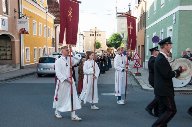 „Mit Herzen, Mund und Händen“ – Pfarrer Klaus Dopler nimmt am Anfang des Gottesdienstes das alte Kirchenlied als Symbol, um die Menschen, die das Fest mitgestalteten, in die Mitte zu holen: