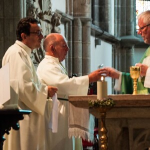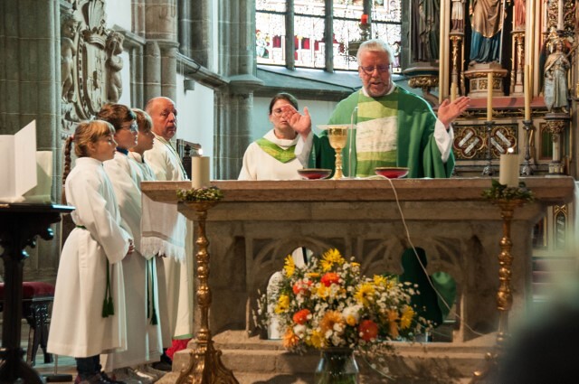 Gemeinsam mit Pastoralassistentin Andrea Peherstorfer zelebriert Pater Severin Großerohde, musikalisch unterstützt vom 17-köpfigen Chor des Institutes St. Pius aus Peuerbach. Begleitet von Gitarre und Cajon singen sie gemeinsam mit der Feiergemeinde Lieder, die das Leben bejahen und Begeisterung dafür ausdrücken.