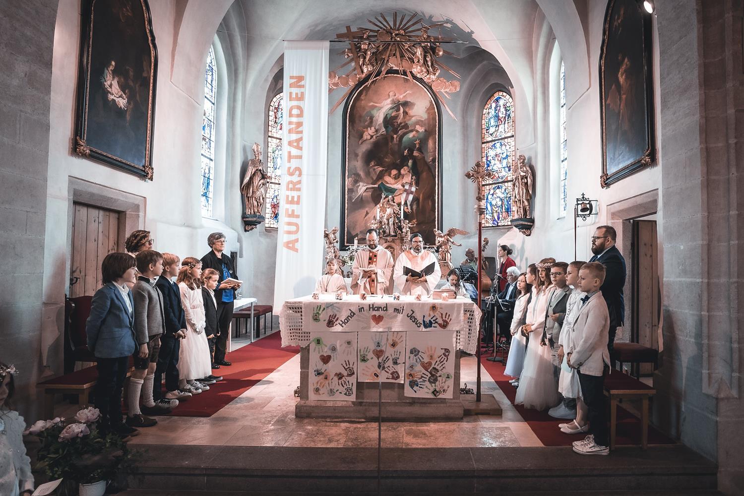 Die Erstkommunion stand unter dem Motto: „Hand in Hand mit Jesus“. Diesen Eindruck hatte ich auch. Die Zusammenarbeit zwischen Pfarre, Schule, Eltern und Kinder war wirklich toll.