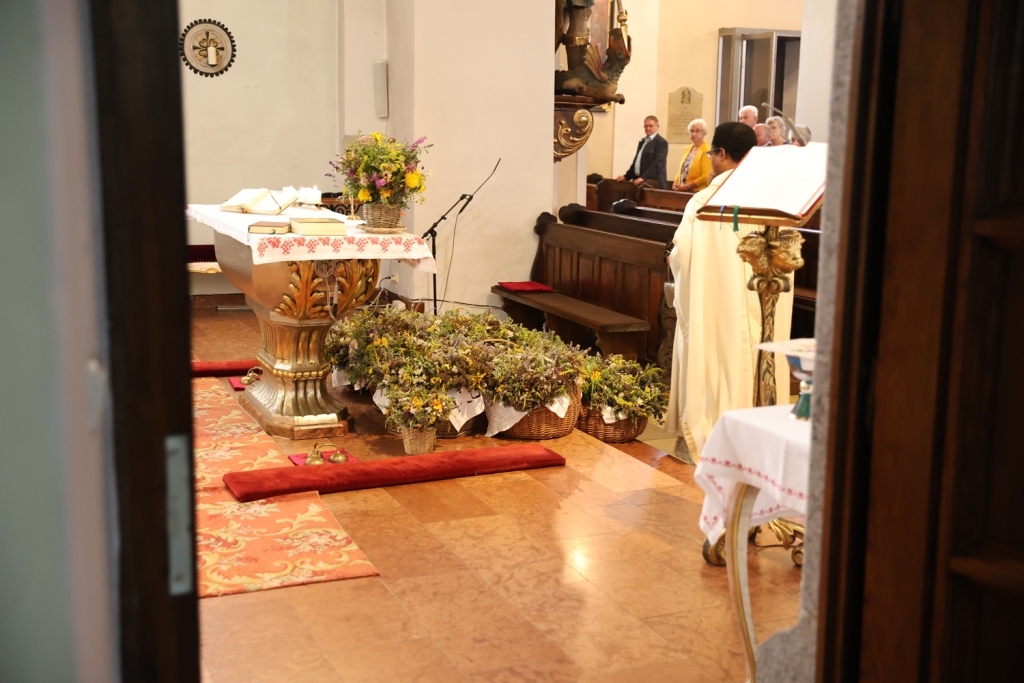 Wie jedes Jahr banden die Goldhaubenfrauen unzählige wohlduftende Kräuterbüscherl, die im Anschluß der Messe an die Besucher verteilt wurden. Am Kirchenplatz konnten sich die Messbesucher anschließend bei einer kleinen Agappe stärken. Die Pfarre Münzkirchen bedankt sich recht herzlich für die Gestaltung bei der Goldhaubengruppe!