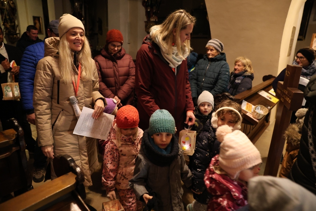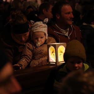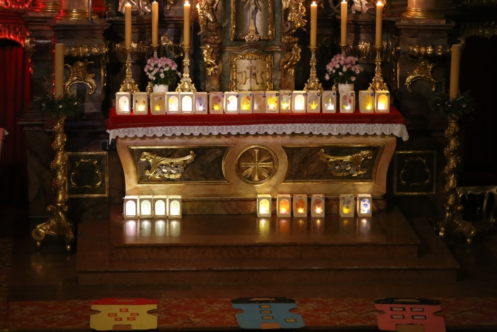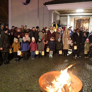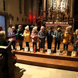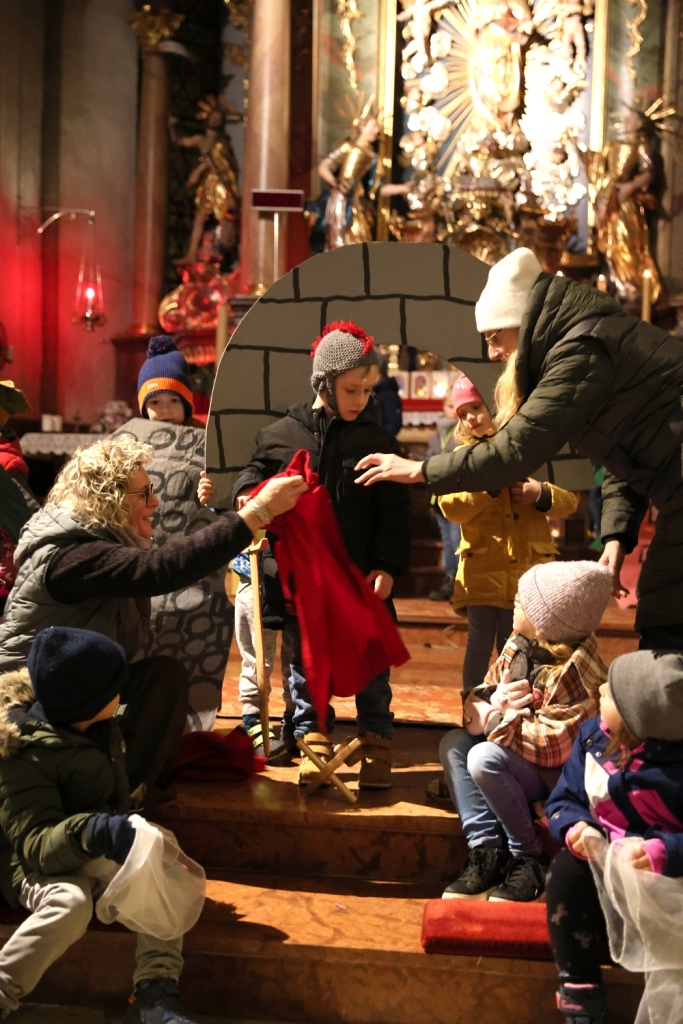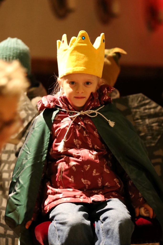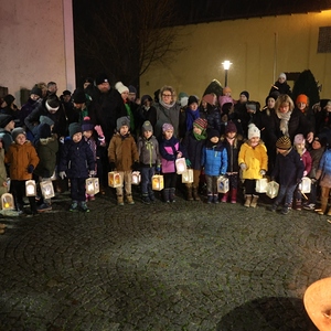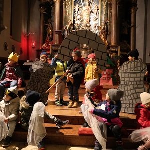 Nach langen Üben feierten die Kindergartenkinder das Martinsfest. Die Schulanfänger führten für die Kirchenbesucher vor, wie es damals war.