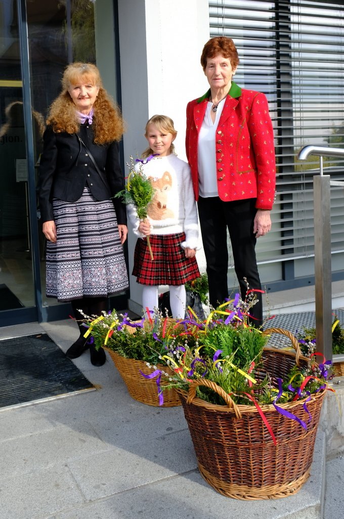 Von den Goldhaubenfrauen wurden sowohl bei der Vorabendmesse am Samstag, als auch vor der Palmprozession Palmbuschen zum Verkauf angeboten. Der Reinerlös dieser Aktion wird von der Goldhaubengruppe für soziale Zwecke in der Pfarrgemeinde gespendet.
